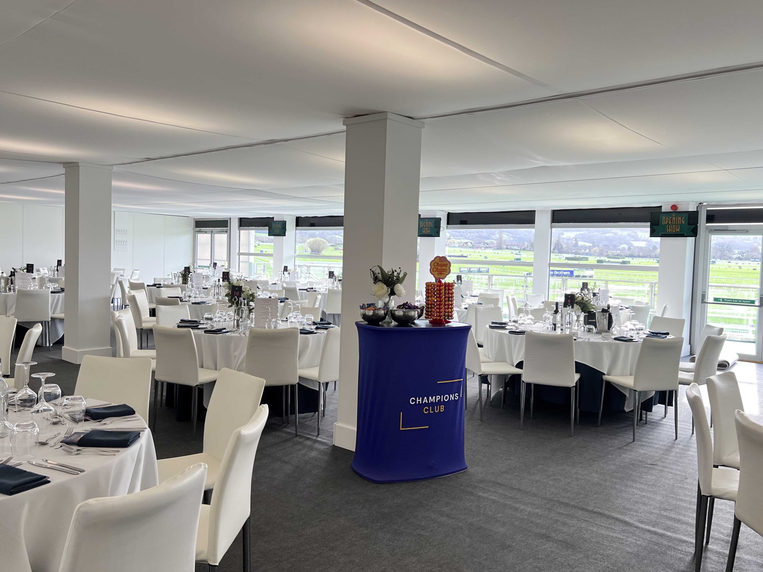 The dress code for The Champions Club is smart casual, with the facility opening at 10.30am and closing at 6pm. Your meal will be served at your leisure from midday. Seating is at private tables of 10 or 12 guests with smaller parties on shared tables but is subject to availability. The Champions Club Hospitality Package comes with a Club badge, allowing full access the racecourse.