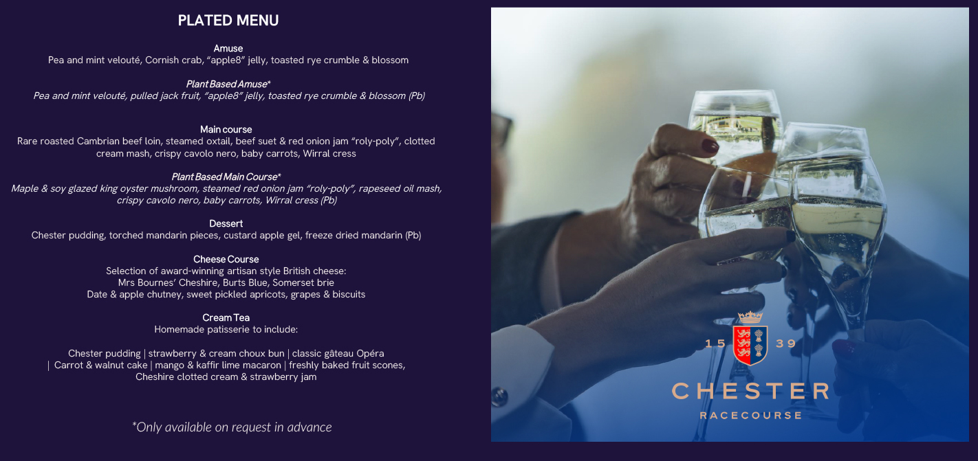 Take a look at our sample menu and itinerary to help you plan your day at the Boodles May Festival.